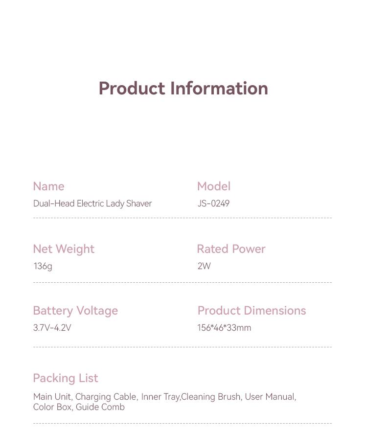 1. Ergonomic Design The women Shaver’s handle is thoughtfully shaped for comfort and ease, fitting naturally in your hand during use. Accented in chic rose-gold, it’s as stylish as it is functional.